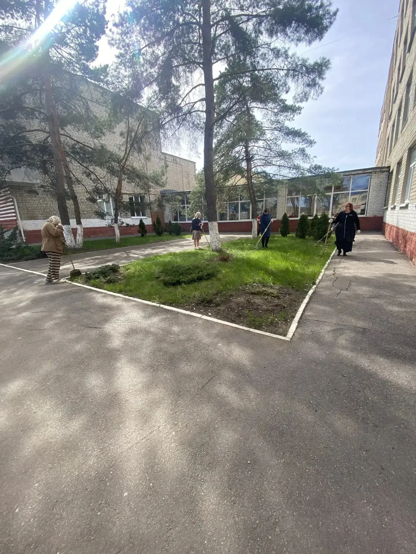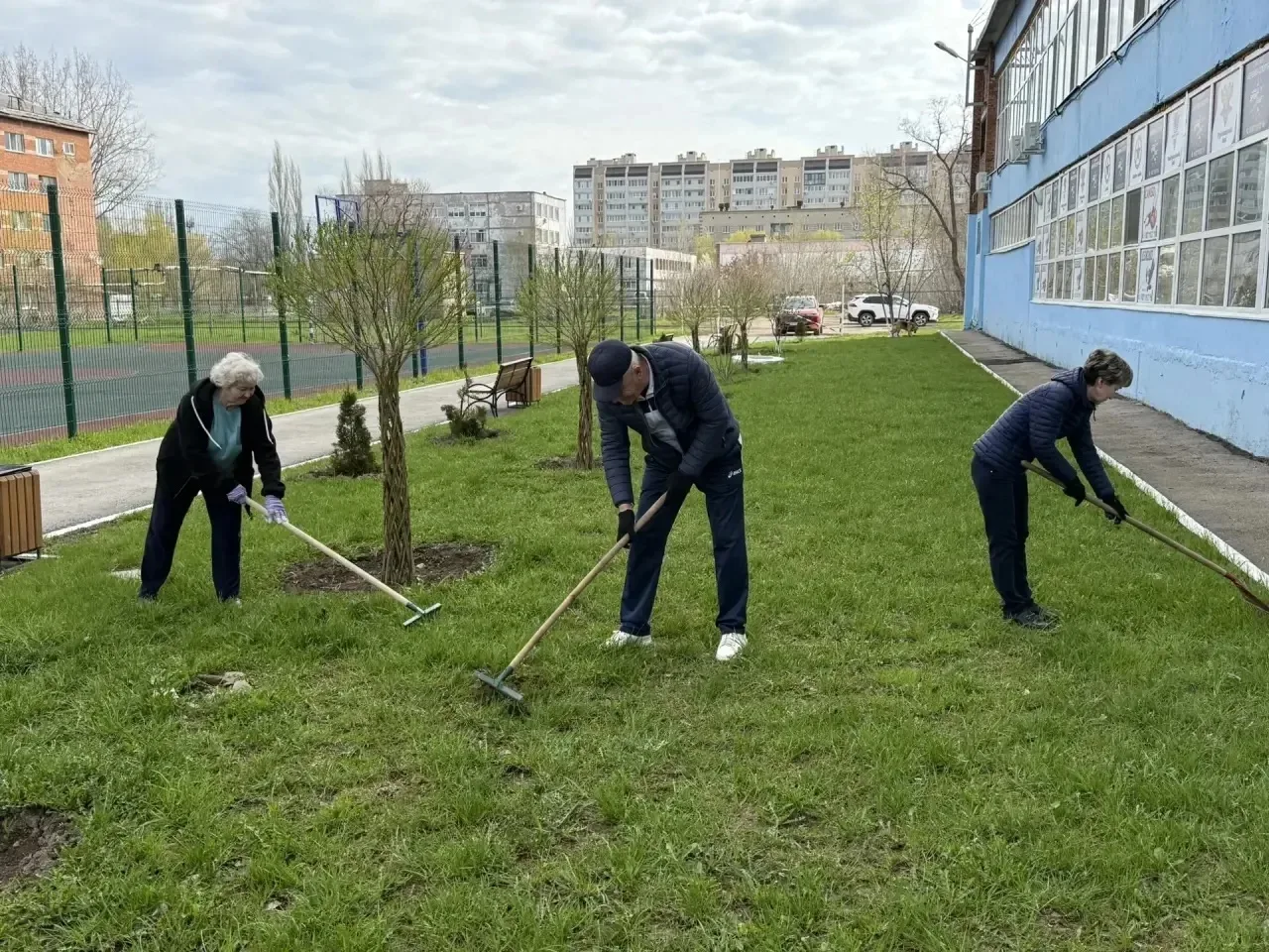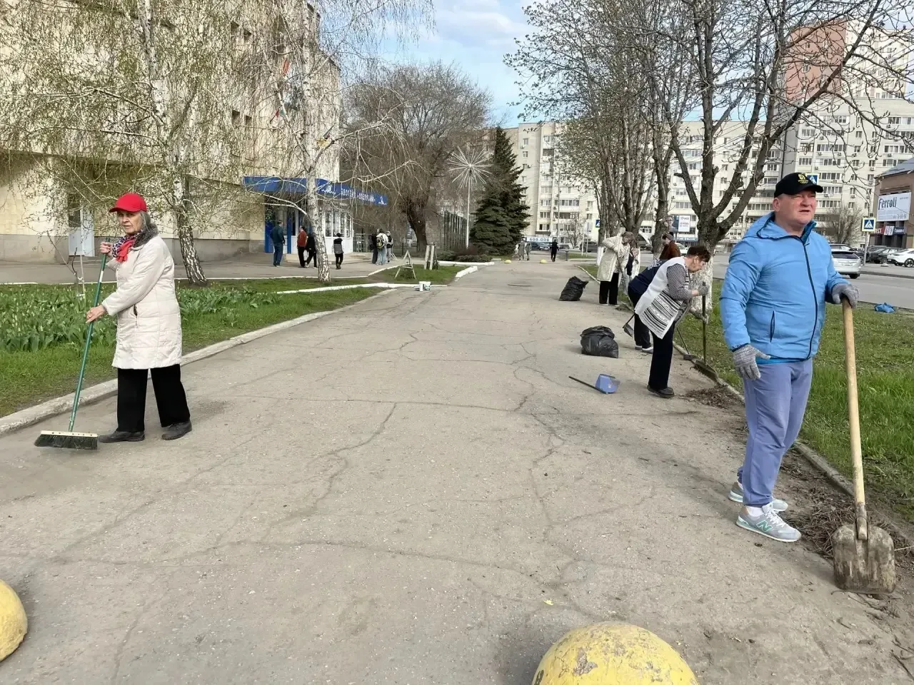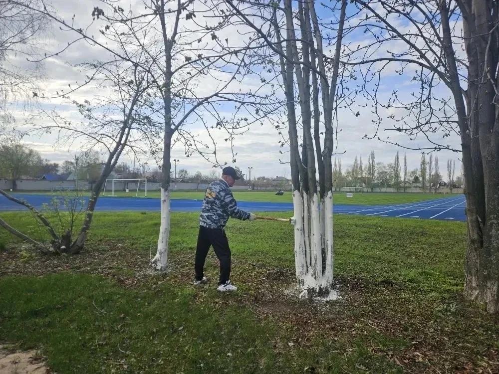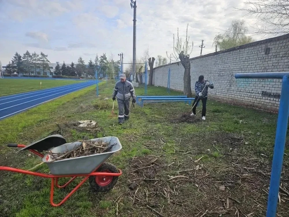 Сотрудники учреждений спорта и молодежной политики, культуры и искусства, образовательных организаций района принимают активное участие в облагораживании прилегающих к зданиям территорий. Участники субботника красят бордюры, белят деревья, убирают мусор, подметают дорожки.