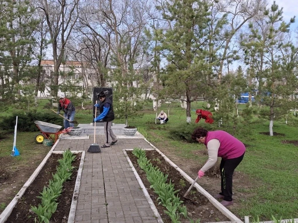 Кроме того, представители коллективов учреждений социальной сферы наводят порядок на общественных пространствах.