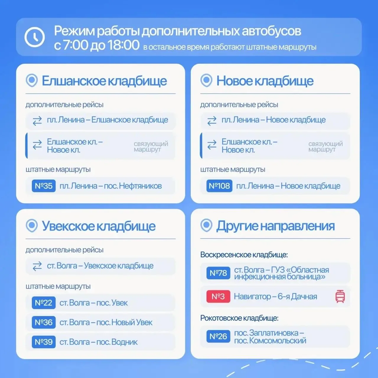 На Радоницу, 21 апреля, для перевозки жителей к городским кладбищам будет организована работа общественного транспорта