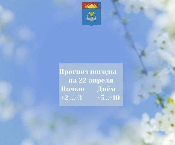 22.04.2026 года ночью: переменная облачность. Местами небольшие осадки (дождь, мокрый снег). Местами туман (500-1000 м). Ветер северо-западный 5-10 м/с, местами порывы до 14 м/с. Температура +2...-3°.