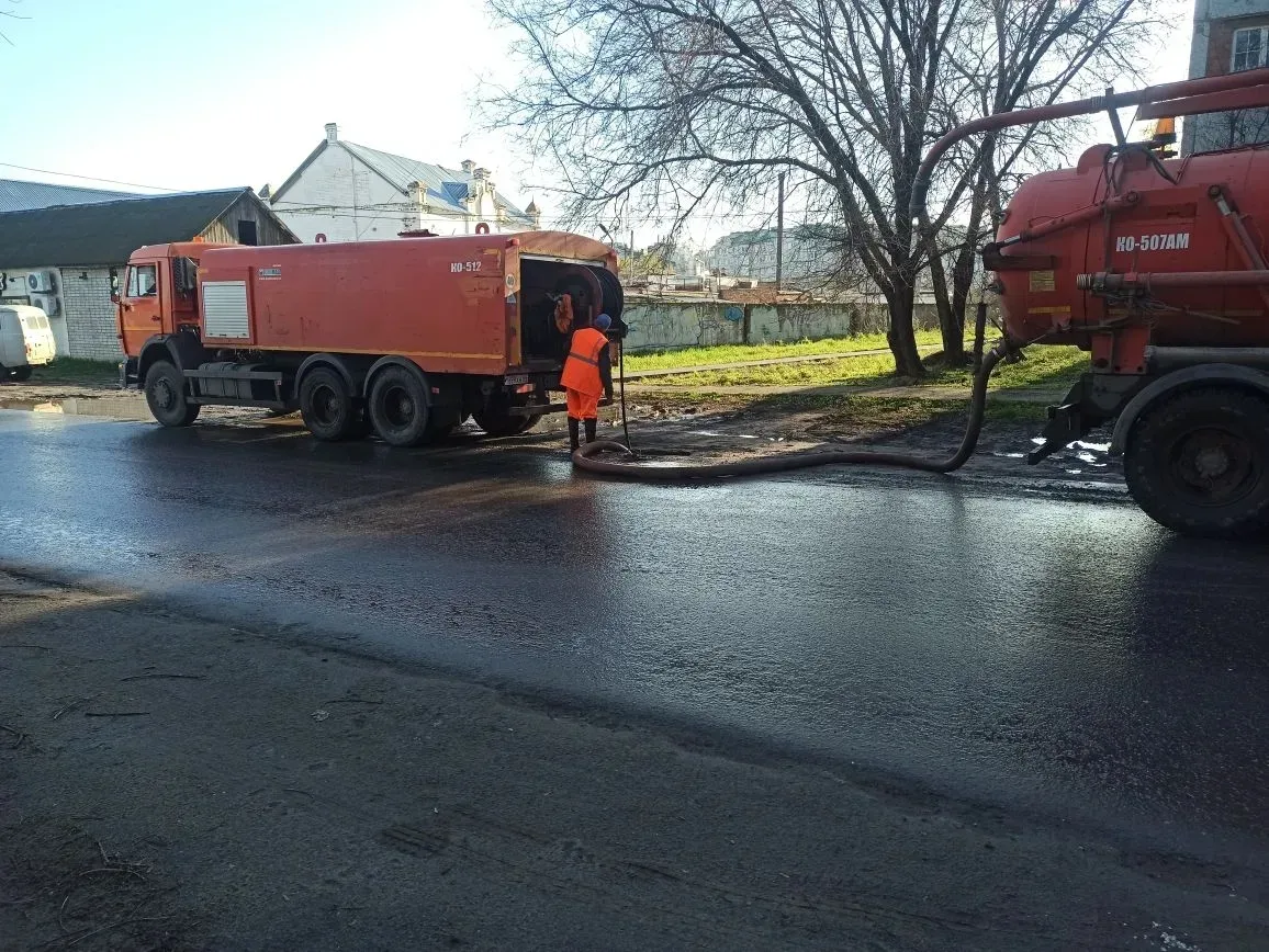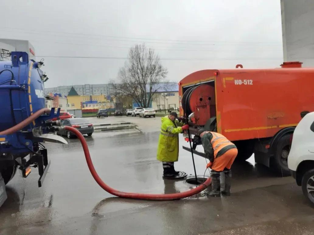 После продолжительного дождя рабочие занимаются откачкой воды на улицах Волжской и Щорса, а также промывкой сливных колодцев на улице Свердлова. Работа ведётся по всему городу.
