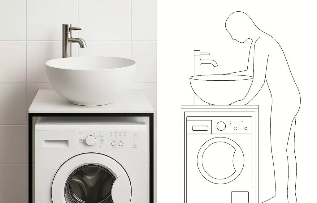 - Ограничения по высоте: Не каждая стиральная машина подходит для установки под раковину. Оптимальная высота — не более 85 см, а оставшееся пространство между устройствами должно составлять 2–3 см для вентиляции.