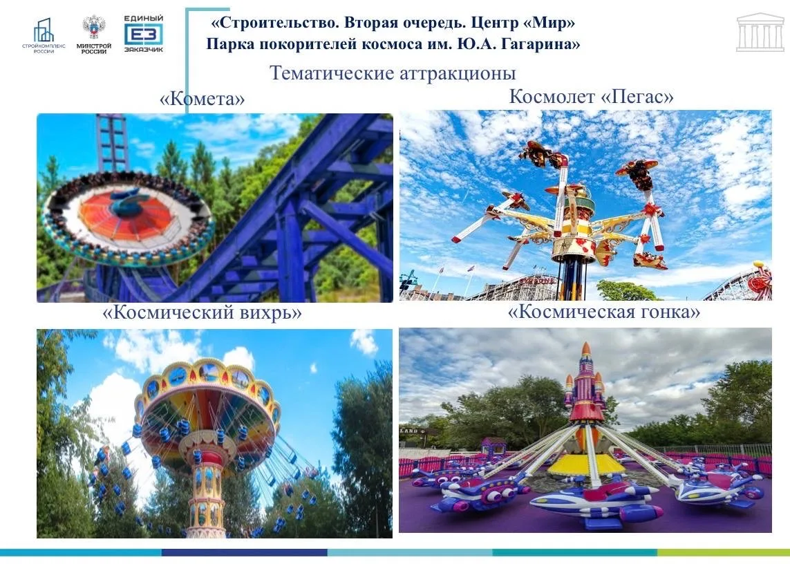 тематические сооружения, посвященные истории космонавтики и будущему освоению космоса.