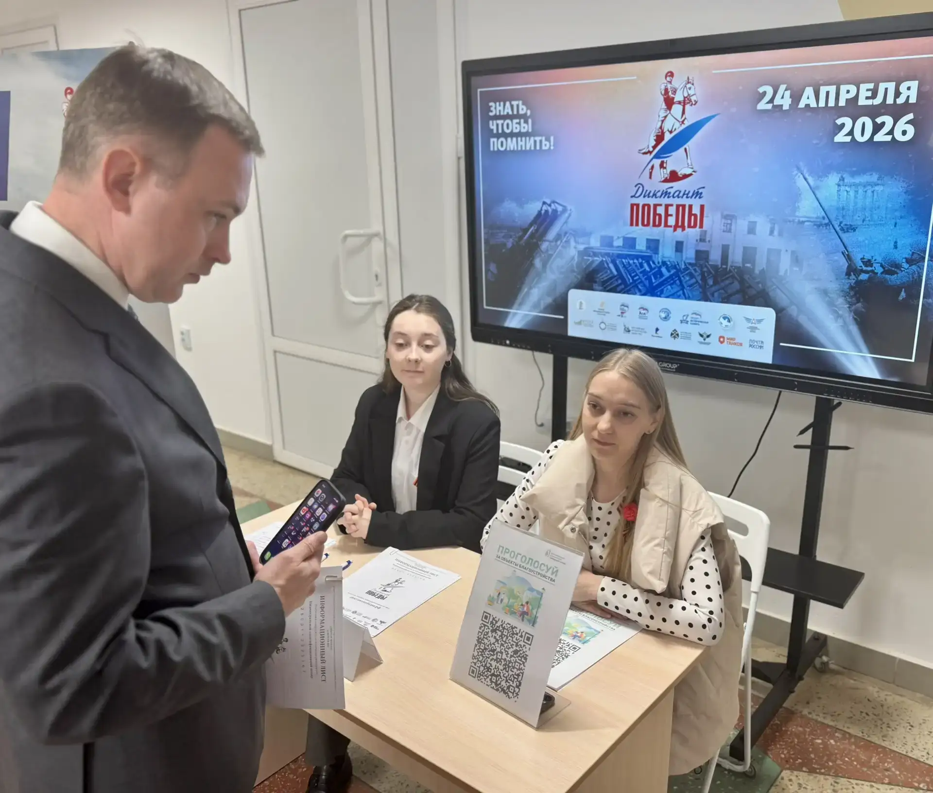 Также в местах проведения «Диктанта Победы» желающие смогли принять участие во Всероссийском голосовании за выбор объектов благоустройства. Напомню, голосование проводится в рамках федеральной программы «Формирование комфортной городской среды» нацпроекта «Инфраструктура для жизни», инициированного Президентом Владимиром Владимировичем Путиным.