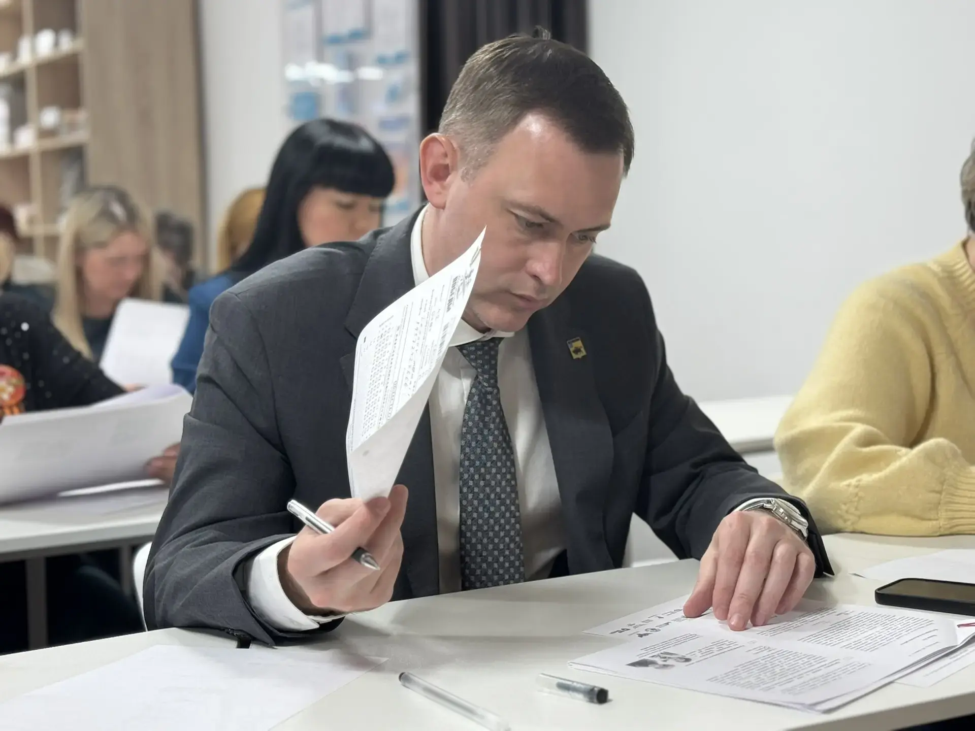 Вместе с коллегами, общественниками, ветеранами и молодежью погрузились в события военных лет, в течение 45 минут ответили на 25 тестовых вопросов.