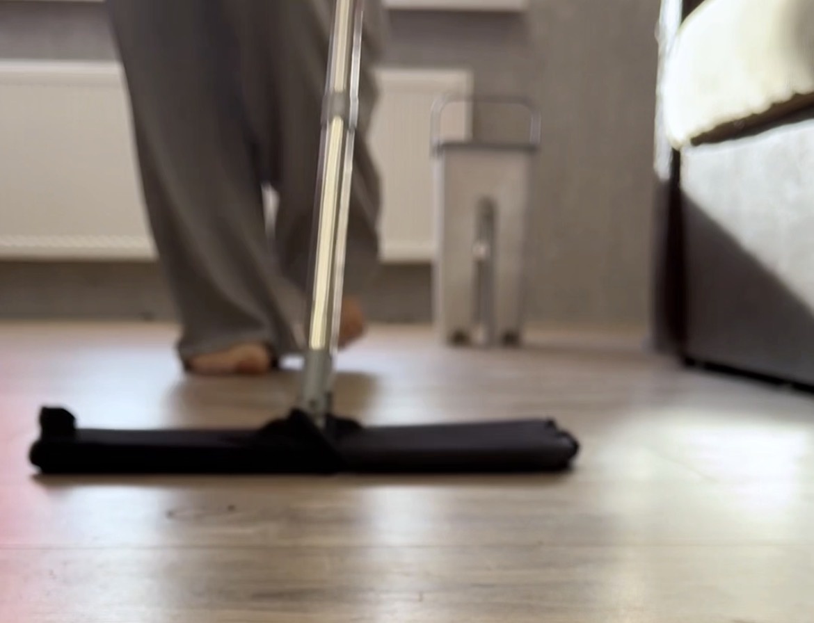 5. После сбора основной грязи, можно спокойно мыть пол обычной влажной шваброй — и вы увидите, что вода останется чистой гораздо дольше.