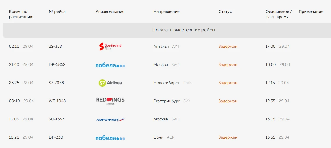 Это стало причиной массовой задержки самолетов. Из Саратова отложены вылеты в Анталью, Москву, Новосибирск, Екатеринбург, Сочи. Также изменилось и время прибытия бортов из Екатеринбурга и Москвы.