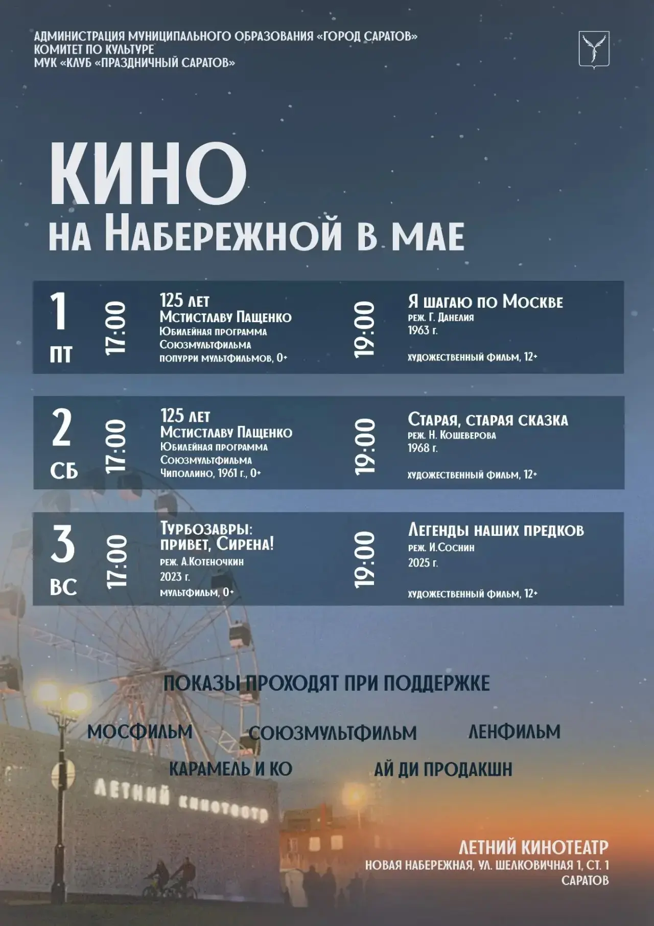 Афиша Летнего кинотеатра в Саратове